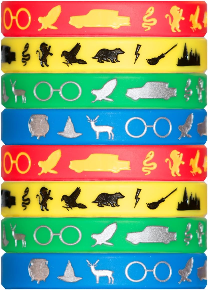 2. Wizard Houses Silicone Wristbands – 8 Pack Party Favor Set (2 of Each Color)